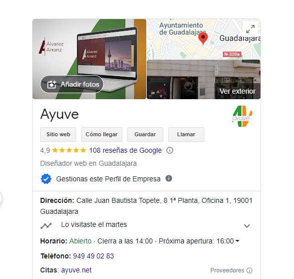 No hay que olvidarse de las IMÁGENES que aparecen en la ficha. ¿Es la imagen visible elegida por Google la más representativa de nuestro negocio? Revisa las fotos que has subido al perfil, quizás puedas rellenar con fotografías propias, etc…